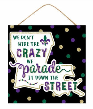 10" Mardi Gras Hide the Crazy Sign