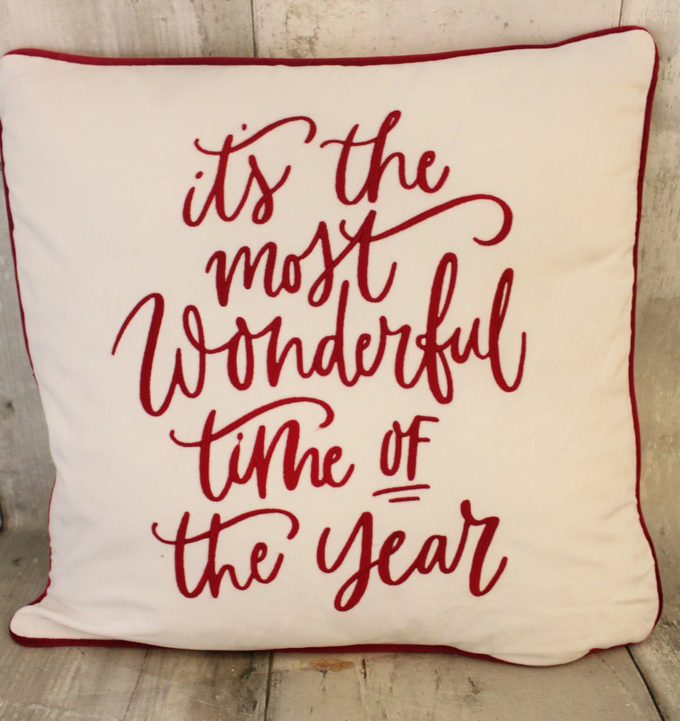 {"id":9118221566166,"title":"18\" Most Wonderful Time Throw Pillow","handle":"christmas-pillow-throw-18inx18in-1","description":"\u003cp\u003e18\" Most Wonderful Time Throw Pillow\u003c\/p\u003e\n\u003cp\u003eCelebrate the joy of the season with the 18\" Most Wonderful Time Throw Pillow. Designed to bring festive charm to any living space, this pillow features the classic phrase \"It's the most wonderful time of the year\" in elegant lettering. Perfect for adding a cozy, seasonal touch to your sofa or favorite chair, it combines comfort with holiday spirit. Crafted with quality materials, this decorative pillow is both durable and soft, making it an ideal accent for your Christmas décor. Elevate your home's festive ambiance effortlessly with this timeless holiday accessory.\u003c\/p\u003e","published_at":"2025-10-22T09:02:07-05:00","created_at":"2025-10-08T14:21:14-05:00","vendor":"KMS LLC","type":"Seasonal Houseware","tags":["Christmas","Decor","houseware","new","pillow","Seasonal","sneak"],"price":1200,"price_min":1200,"price_max":1200,"available":true,"price_varies":false,"compare_at_price":3999,"compare_at_price_min":3999,"compare_at_price_max":3999,"compare_at_price_varies":false,"variants":[{"id":47353229869270,"title":"Default Title","option1":"Default Title","option2":null,"option3":null,"sku":"EG7800803","requires_shipping":true,"taxable":true,"featured_image":null,"available":true,"name":"18\" Most Wonderful Time Throw Pillow","public_title":null,"options":["Default Title"],"price":1200,"weight":454,"compare_at_price":3999,"inventory_management":"shopify","barcode":"810029540803","requires_selling_plan":false,"selling_plan_allocations":[]}],"images":["\/\/www.ellishomeandgarden.com\/cdn\/shop\/files\/EG780080318X18.jpg?v=1761141651"],"featured_image":"\/\/www.ellishomeandgarden.com\/cdn\/shop\/files\/EG780080318X18.jpg?v=1761141651","options":["Title"],"media":[{"alt":null,"id":39317187657942,"position":1,"preview_image":{"aspect_ratio":0.943,"height":1679,"width":1584,"src":"\/\/www.ellishomeandgarden.com\/cdn\/shop\/files\/EG780080318X18.jpg?v=1761141651"},"aspect_ratio":0.943,"height":1679,"media_type":"image","src":"\/\/www.ellishomeandgarden.com\/cdn\/shop\/files\/EG780080318X18.jpg?v=1761141651","width":1584}],"requires_selling_plan":false,"selling_plan_groups":[],"content":"\u003cp\u003e18\" Most Wonderful Time Throw Pillow\u003c\/p\u003e\n\u003cp\u003eCelebrate the joy of the season with the 18\" Most Wonderful Time Throw Pillow. Designed to bring festive charm to any living space, this pillow features the classic phrase \"It's the most wonderful time of the year\" in elegant lettering. Perfect for adding a cozy, seasonal touch to your sofa or favorite chair, it combines comfort with holiday spirit. Crafted with quality materials, this decorative pillow is both durable and soft, making it an ideal accent for your Christmas décor. Elevate your home's festive ambiance effortlessly with this timeless holiday accessory.\u003c\/p\u003e"}