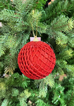 4" Red Glitter Net Ball Ornament