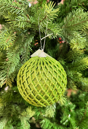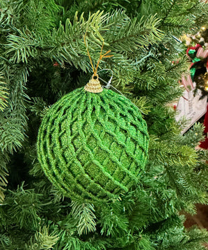 4" Emerald Green Glitter Net Ball Ornament