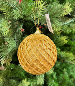 4" Gold Glitter Net Ball Ornament