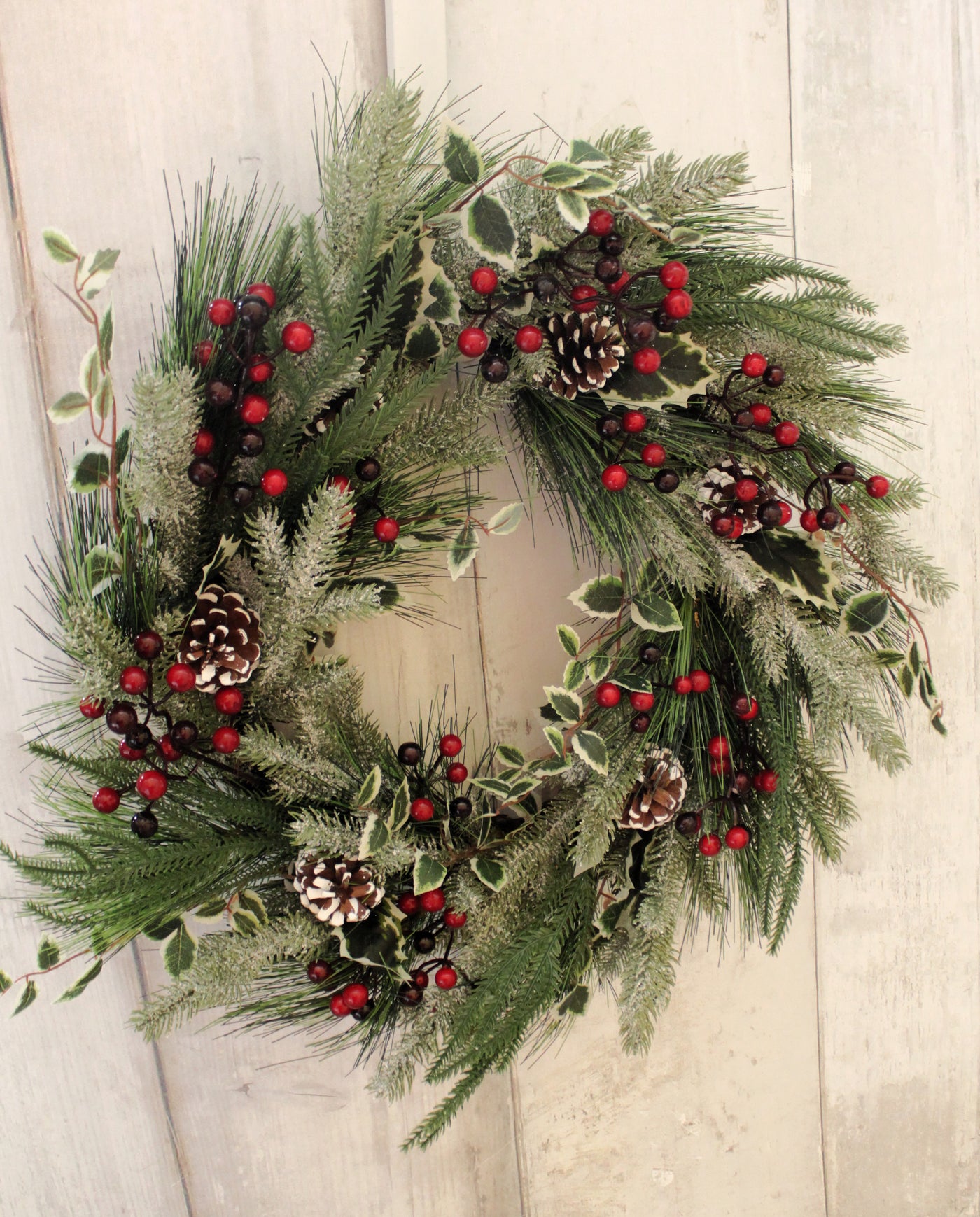 Enhance your holiday décor with this 24" Mixed Christmas Wreath featuring lifelike artificial greenery and vibrant berries. Crafted for lasting beauty, it offers a rich blend of textures that bring festive warmth to any door or wall. This wreath provides a hassle-free seasonal accent, maintaining its fresh, detailed appearance year after year without shedding or fading.