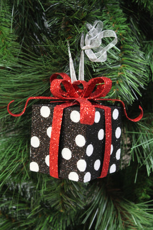 4" Black & White Polka Dots Gift Box Ornament