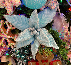 20" Pastel Blue Poinsettia Pick