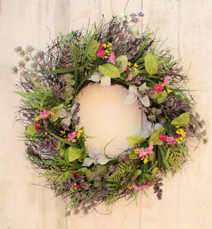 24" Lavender Butterfly & Grass Spring Grapevine Wreath