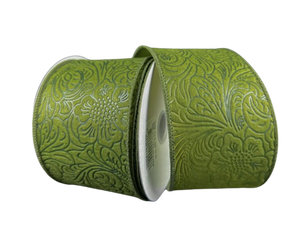 2.5" Moss Green Floral Embossed Ribbon