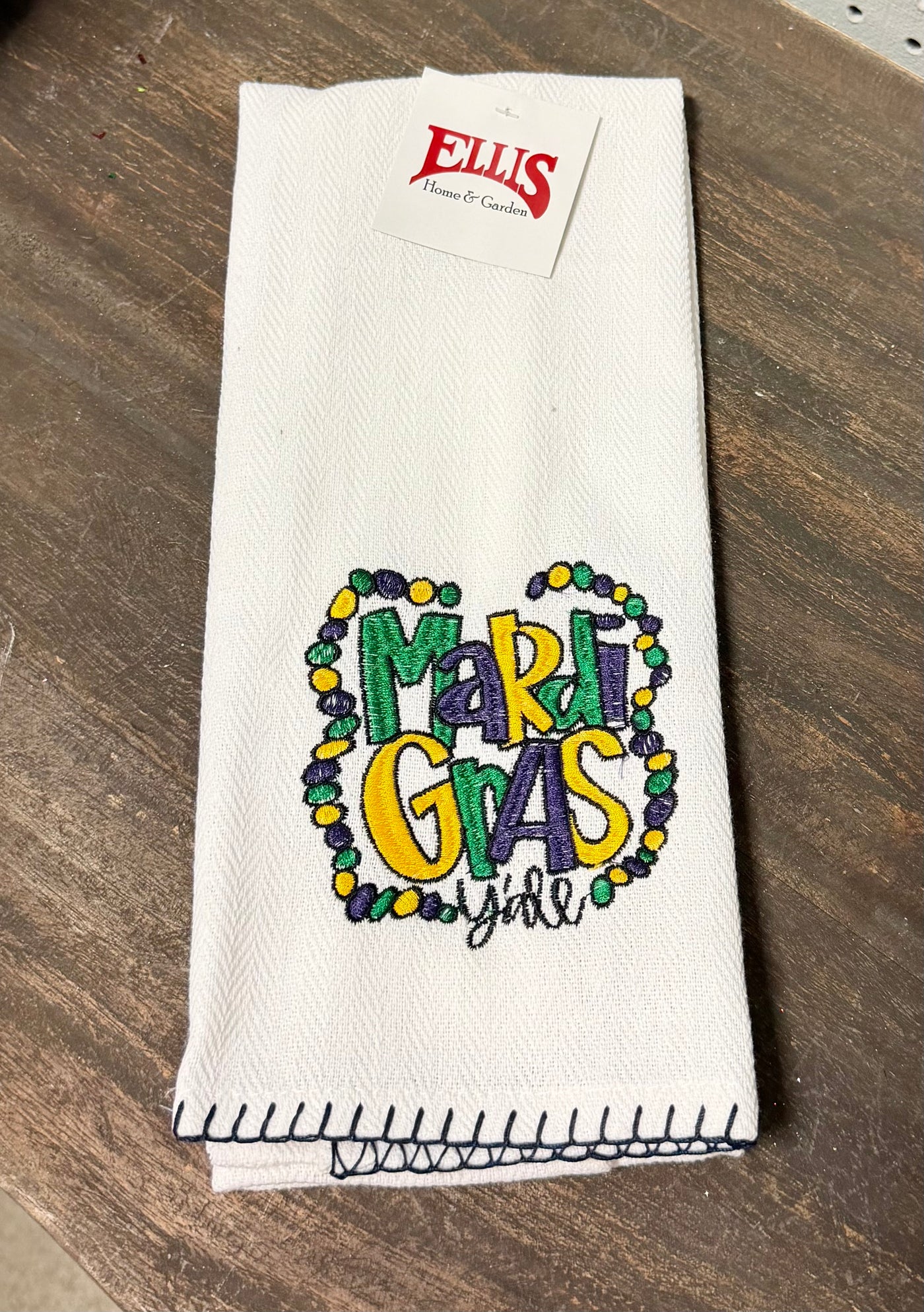 {"id":7790105526486,"title":"Mardi Gras Y'all Hand Towel","handle":"mg-ktowel-mardi-gras-fdl-ehg-02","description":"\u003cp\u003eMardi Gras Y'all Hand Towel\u003c\/p\u003e","published_at":"2025-10-24T02:50:53-05:00","created_at":"2022-08-08T14:23:42-05:00","vendor":"NIDICO GROUP INC.","type":"Mardi Gras Decor","tags":["Decor","houseware","Mardi Gras","Seasonal"],"price":399,"price_min":399,"price_max":399,"available":true,"price_varies":false,"compare_at_price":1299,"compare_at_price_min":1299,"compare_at_price_max":1299,"compare_at_price_varies":false,"variants":[{"id":43344784097494,"title":"Default Title","option1":"Default Title","option2":null,"option3":null,"sku":"EHG-02","requires_shipping":true,"taxable":true,"featured_image":null,"available":true,"name":"Mardi Gras Y'all Hand Towel","public_title":null,"options":["Default Title"],"price":399,"weight":454,"compare_at_price":1299,"inventory_management":"shopify","barcode":"743598039396","requires_selling_plan":false,"selling_plan_allocations":[]}],"images":["\/\/www.ellishomeandgarden.com\/cdn\/shop\/files\/IMG_2358_683d18bf-f14e-4582-adb5-a6ed6f5fe304.jpg?v=1768580235"],"featured_image":"\/\/www.ellishomeandgarden.com\/cdn\/shop\/files\/IMG_2358_683d18bf-f14e-4582-adb5-a6ed6f5fe304.jpg?v=1768580235","options":["Title"],"media":[{"alt":null,"id":40439074586838,"position":1,"preview_image":{"aspect_ratio":0.705,"height":3295,"width":2323,"src":"\/\/www.ellishomeandgarden.com\/cdn\/shop\/files\/IMG_2358_683d18bf-f14e-4582-adb5-a6ed6f5fe304.jpg?v=1768580235"},"aspect_ratio":0.705,"height":3295,"media_type":"image","src":"\/\/www.ellishomeandgarden.com\/cdn\/shop\/files\/IMG_2358_683d18bf-f14e-4582-adb5-a6ed6f5fe304.jpg?v=1768580235","width":2323}],"requires_selling_plan":false,"selling_plan_groups":[],"content":"\u003cp\u003eMardi Gras Y'all Hand Towel\u003c\/p\u003e"}