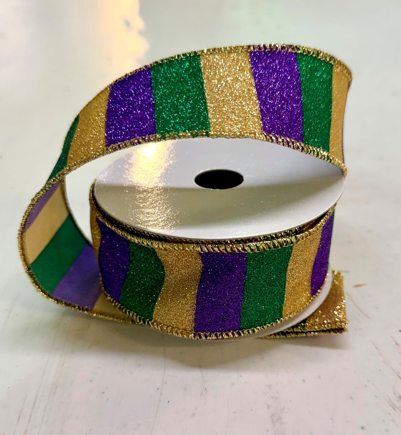 1.5" Wide Mardi Gras Glitter Stripes Ribbon