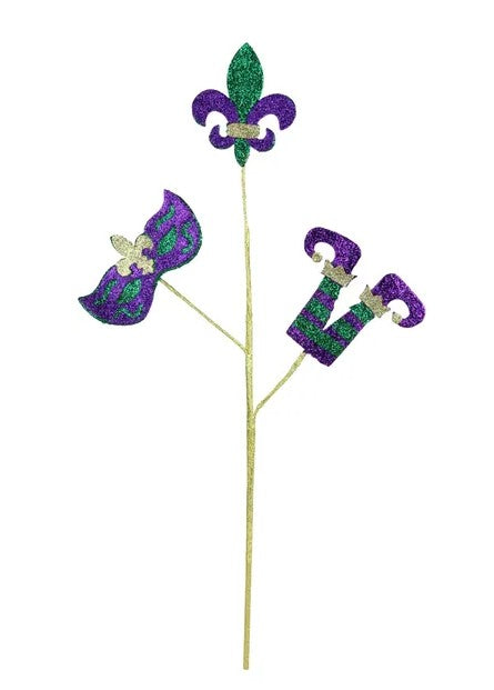 This 25-inch Mardi Gras mask spray combines festive tradition with sophisticated design, featuring an ornate jester motif and iconic fleur de lis accents. The dramatic scale makes it an impressive focal point for holiday displays, themed events, or seasonal home décor. Crafted with attention to authentic Mardi Gras aesthetics, this floral spray brings vibrant celebration and New Orleans charm to any arrangement or setting. Perfect for adding theatrical flair to wreaths, centerpieces, or standalone installations during carnival season and beyond.
