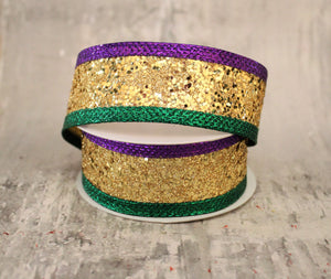 1.5" Mardi Gras Large Gold Glitter Ribbon