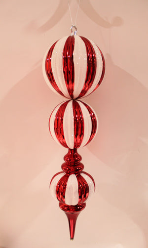22" Red & White Striped Finial Ball Ornament